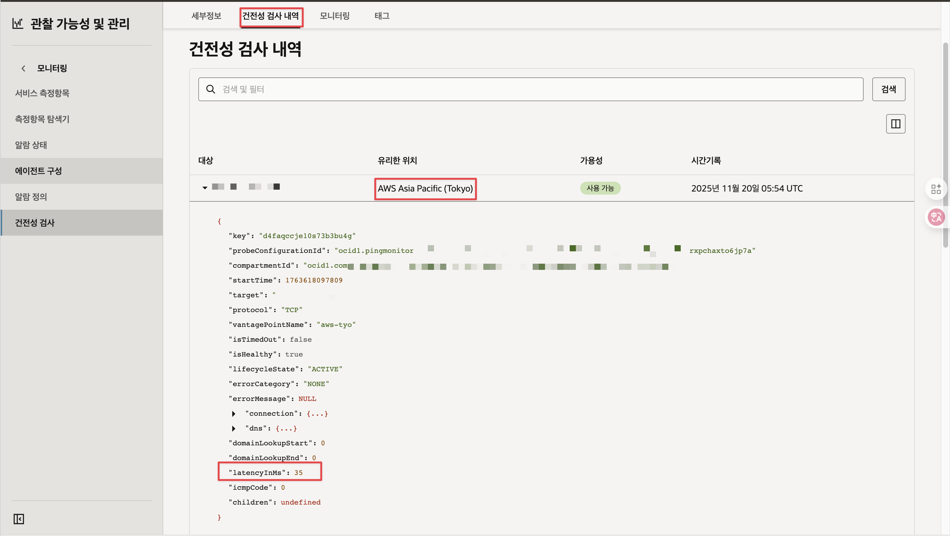 OCI Health Checks는 인터넷에 노출된 Public Endpoint에 대해 외부 위치에서 주기적으로 Ping/TCP/HTTP 검사를 수행하여, 서비스의 상태를 확인하는 모니터링 서비스입니다.