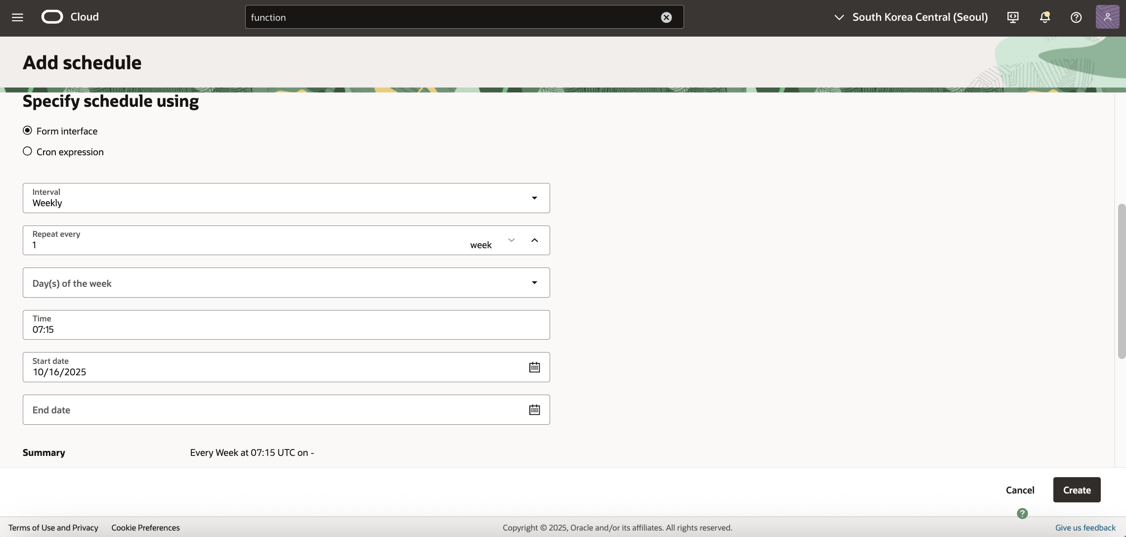 - Documentation: https://docs.oracle.com/en-us/iaas/Content/Functions/Tasks/functionsschedulingfunctions-about.htm
